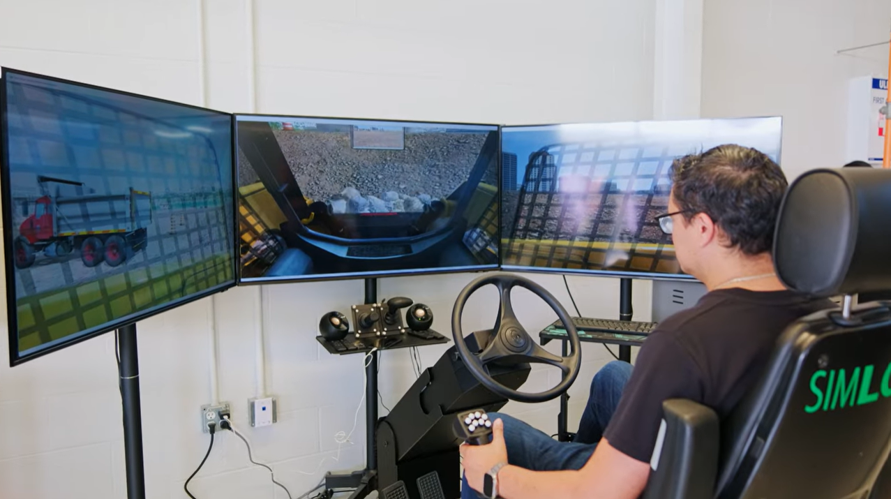 Simlog's Skid Steer Loader Personal Simulator consists of 8 Simulation Modules which increase in difficulty, and 66 Performance Indicators to comprehensively measure the simulated work. The simulation software puts students at the controls of a typical skid steer loader equipped with either a bucket or forks, at work in a typical construction site.